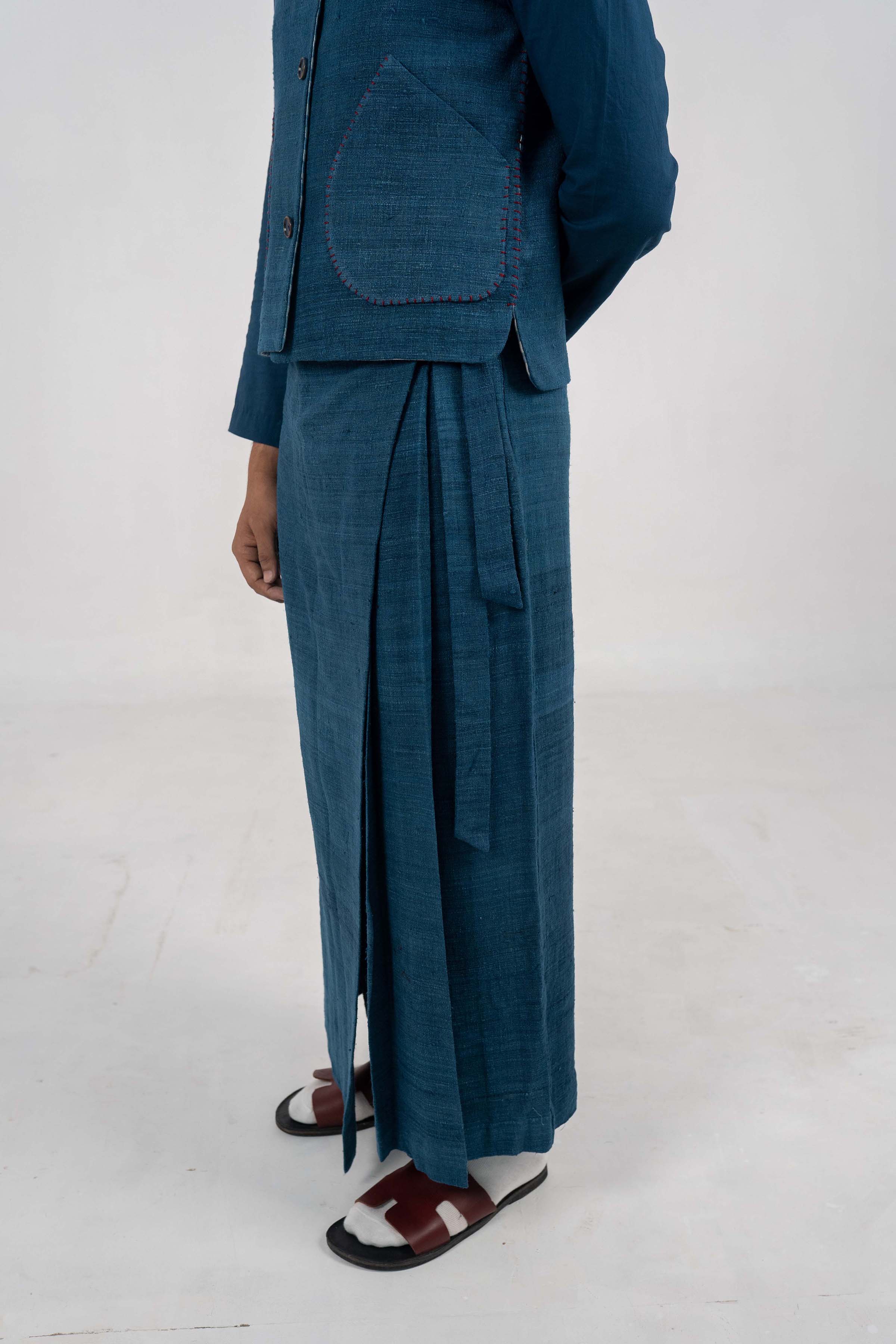 Companion Indigo Eri Silk pants with flap and tie-up detail. Companion Indigo Eri Silk pants with flap and tie-up detail. – Handwoven Eri Silk fabric. – Indigo Dyed. – Corozo Nut Buttons. – Custom made option is also Available. – Dry Clean only. ₹12,000.00 Size Choose an optionCustom Made (₹12,000.00)L (₹12,000.00)M (₹12,000.00)S (₹12,000.00)Clear Companion Indigo Eri Silk pants with flap and tie-up detail. quantity Add to cart SKU: IN-PANTS-32 Categories: Between the Sky & Soil, Collections, Menswear, Pants, Products Tags: Between Sky and Soil, Eri Silk, Handwoven, Indigo Dyed Additional information Additional information Size Custom Made, L, M, S Related products Eri Silk bucket hat. ₹3,000.00 Select options Tea dyed Handwoven Eri Silk Jacket with wrap-over tie-up detail ₹18,000.00 Select options Off White Eri Silk Notch collar jacket ₹12,000.00 Select options DB full sleeve Tea dyed Handwoven Eri Silk long coat ₹20,000.00 Select options