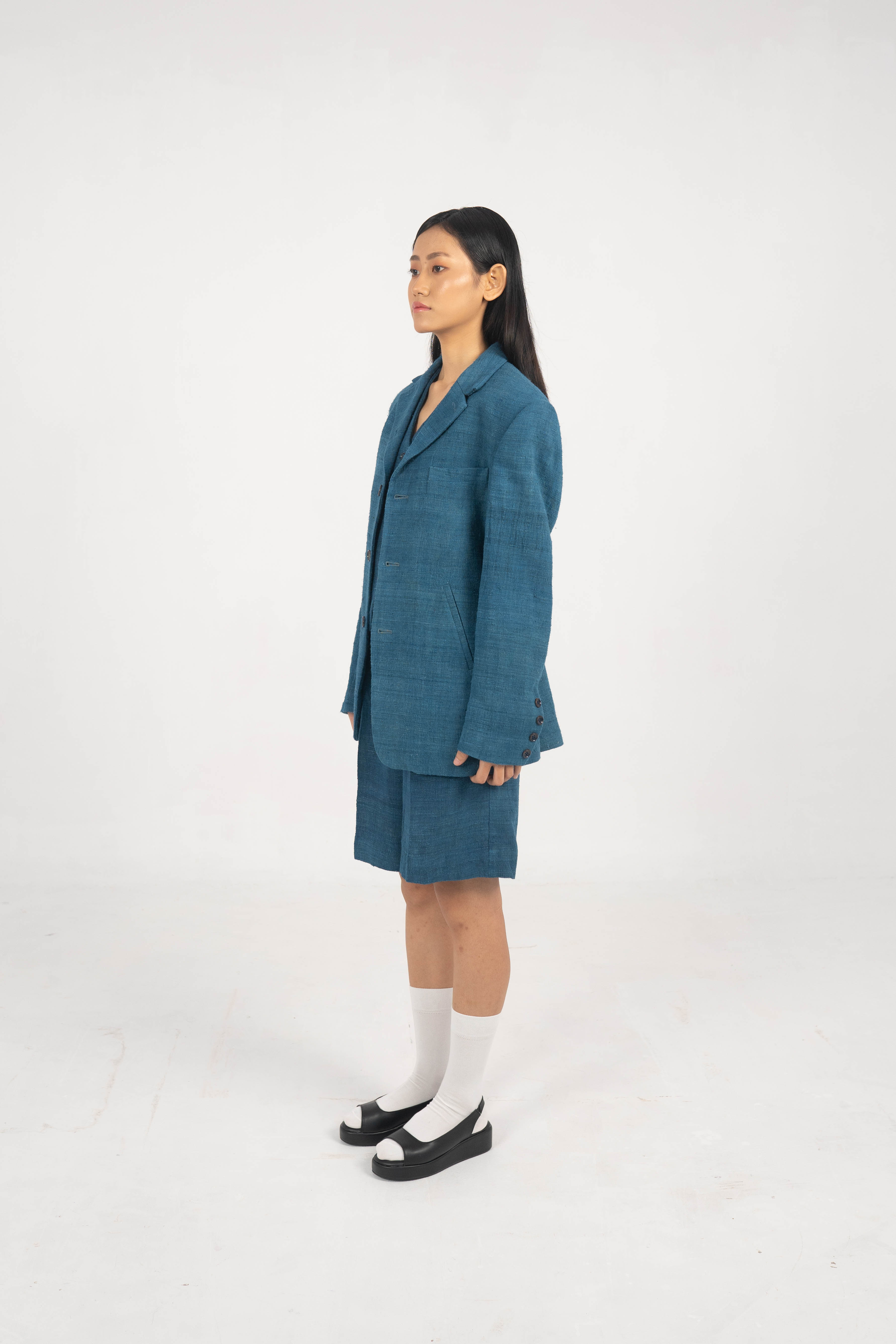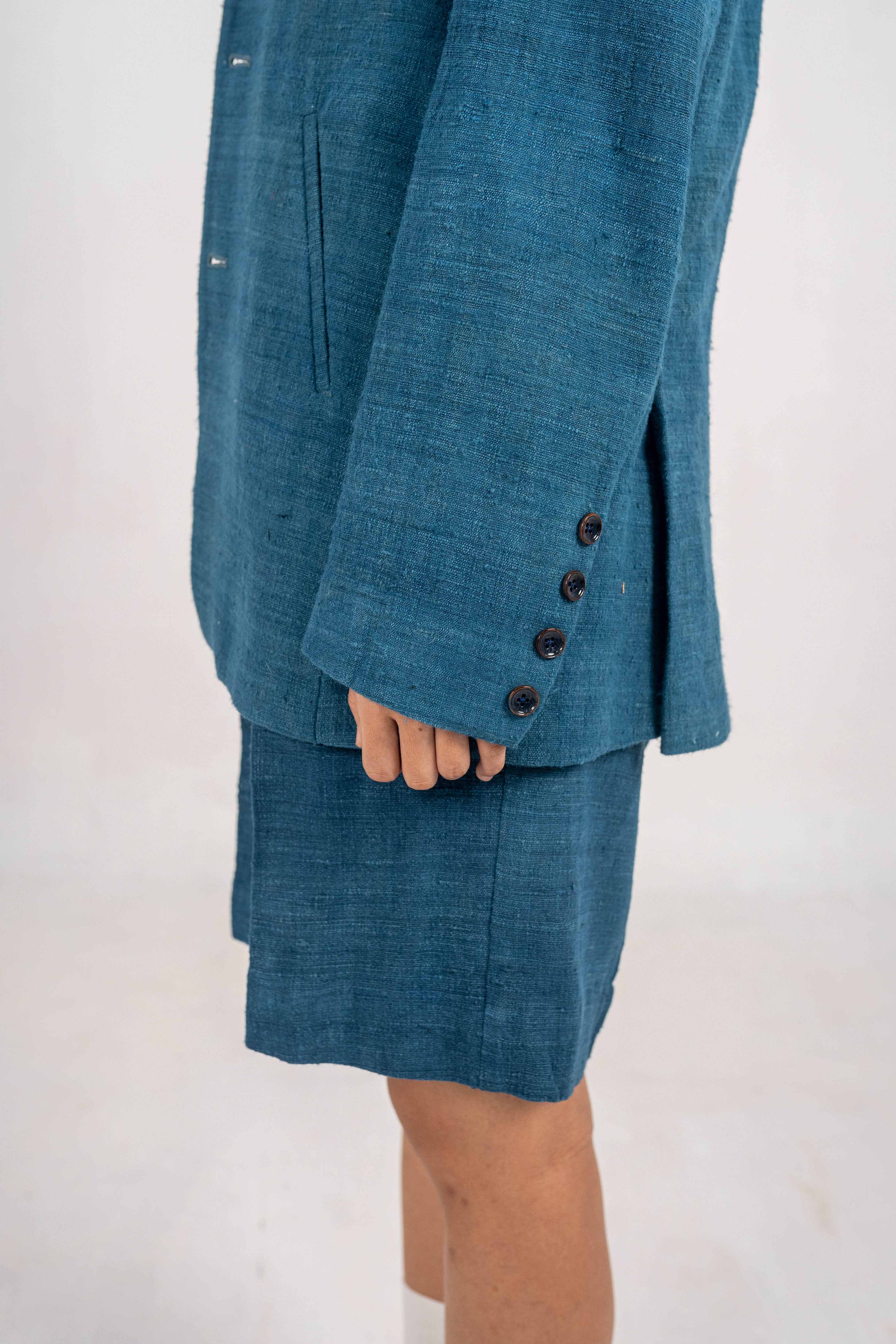 Explorer Indigo Eri Silk Convertible jacket. Explorer Indigo Eri Silk Convertible jacket. – Handwoven Eri Silk fabric. – Indigo Dyed. – Corozo Nut Buttons. – Custom made option is also Available. – Dry Clean only. ₹14,000.00 Size Choose an optionCustom Made (₹14,000.00)L (₹14,000.00)M (₹14,000.00)S (₹14,000.00)Clear Explorer Indigo Eri Silk Convertible jacket. quantity Add to cart SKU: IN-JACKET-02 Categories: Between the Sky & Soil, Collections, Jacket, Products, Womenswear Tags: Between Sky and Soil, Eri Silk, Handwoven, Indigo Dyed Additional information Additional information Size Custom Made, L, M, S Related products Cherry trench coat ₹18,000.00 Select options Tea dyed Eri Silk Jacket with patch pockets. ₹14,000.00 Select options All day comfort Indigo Stripe jacket. ₹12,000.00 Select options Rover Eri jacket ₹16,500.00 Select options