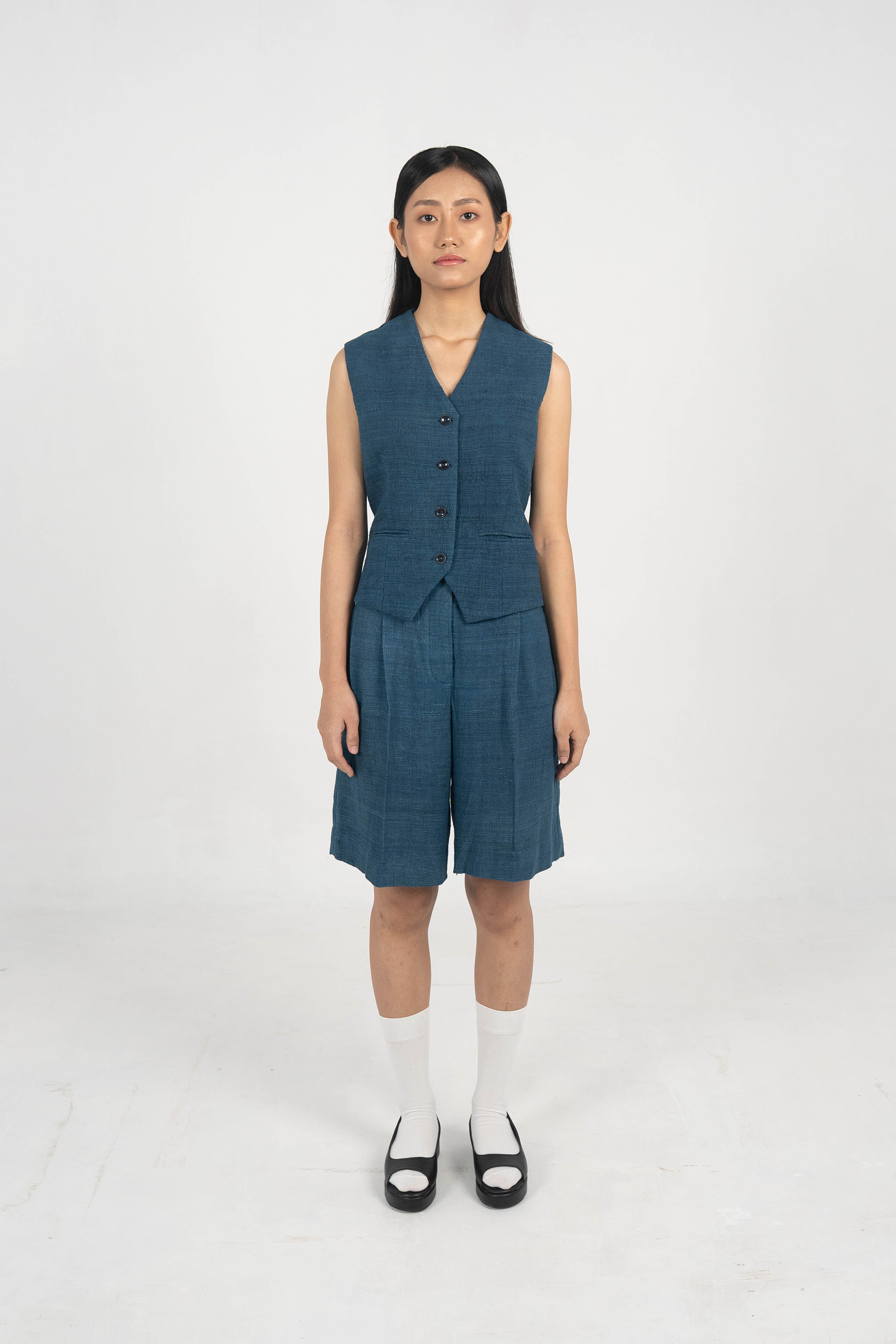 Explorer Indigo Eri Silk waistcoat. Explorer Indigo Eri Silk waistcoat. – Handwoven Eri Silk fabric. – Indigo Dyed. – Corozo Nut Buttons. – Custom made option is also Available. – Dry Clean only. ₹7,000.00 Size Choose an optionCustom Made (₹7,000.00)L (₹7,000.00)M (₹7,000.00)S (₹7,000.00)Clear Explorer Indigo Eri Silk waistcoat. quantity Add to cart SKU: IN-WAISTCOAT-01 Categories: Between the Sky & Soil, Collections, Products, Waistcoat, Womenswear Tags: Between Sky and Soil, Eri Silk, Handwoven, Indigo Dyed Related products Tea dyed Handwoven Eri Silk Jacket with wrap-over tie-up detail ₹18,000.00 Select options Eri Silk Peak collar waistcoat with flap pockets in front. ₹6,000.00 Select options Eri Silk Easy pleated pants with cross pockets. ₹9,000.00 Select options Off White Eri Silk Notch collar jacket ₹12,000.00 Select options