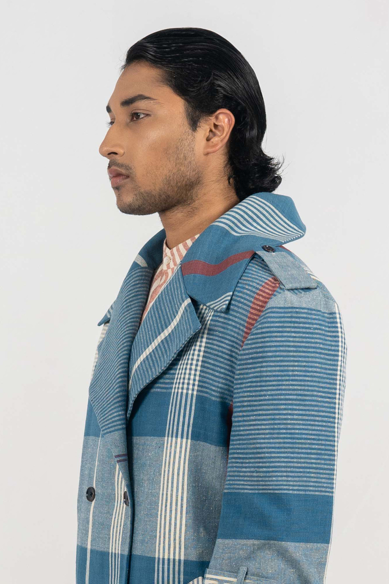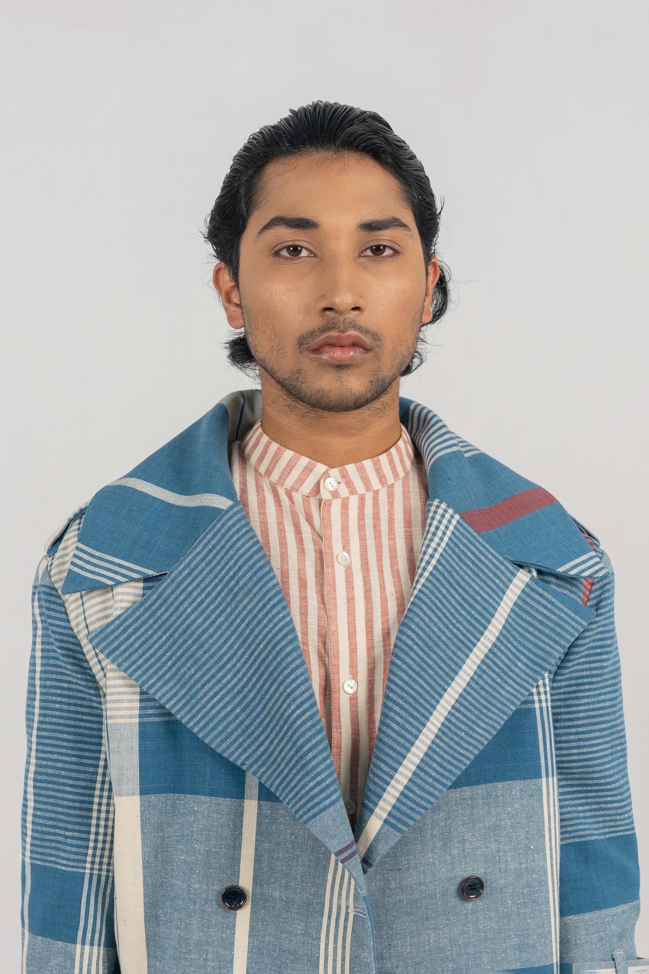 Intertwined Indigo Stripe/Check Eri Silk Jacket. Intertwined Indigo Stripe/Check Eri Silk Jacket. – Handwoven Eri Silk X Cotton fabric. – Indigo Dyed. – Corozo Nut Buttons. – Custom made size option is also Available. – Handwoven Eri Silk X Eri Silk on custom request. – Dry Clean only. ₹20,000.00 Size Choose an optionCustom Made (₹20,000.00)L (₹20,000.00)M (₹20,000.00)S (₹20,000.00)Clear Intertwined Indigo Stripe/Check Eri Silk Jacket. quantity Add to cart SKU: IN-JACKET-21 Categories: Between the Sky & Soil, Collections, Jacket, Menswear, Products Tags: Between Sky and Soil, Eri Silk, Handwoven, Indigo Dyed Additional information Additional information Size Custom Made, L, M, S Related products Tea dyed Eri Silk Crop jacket ₹12,000.00 Select options Tea Dyed Eri Silk hakama style shorts ₹7,000.00 Select options DB full sleeve Tea dyed Handwoven Eri Silk long coat ₹20,000.00 Select options Tea Dyed Eri silk bucket hat. ₹3,000.00 Select options