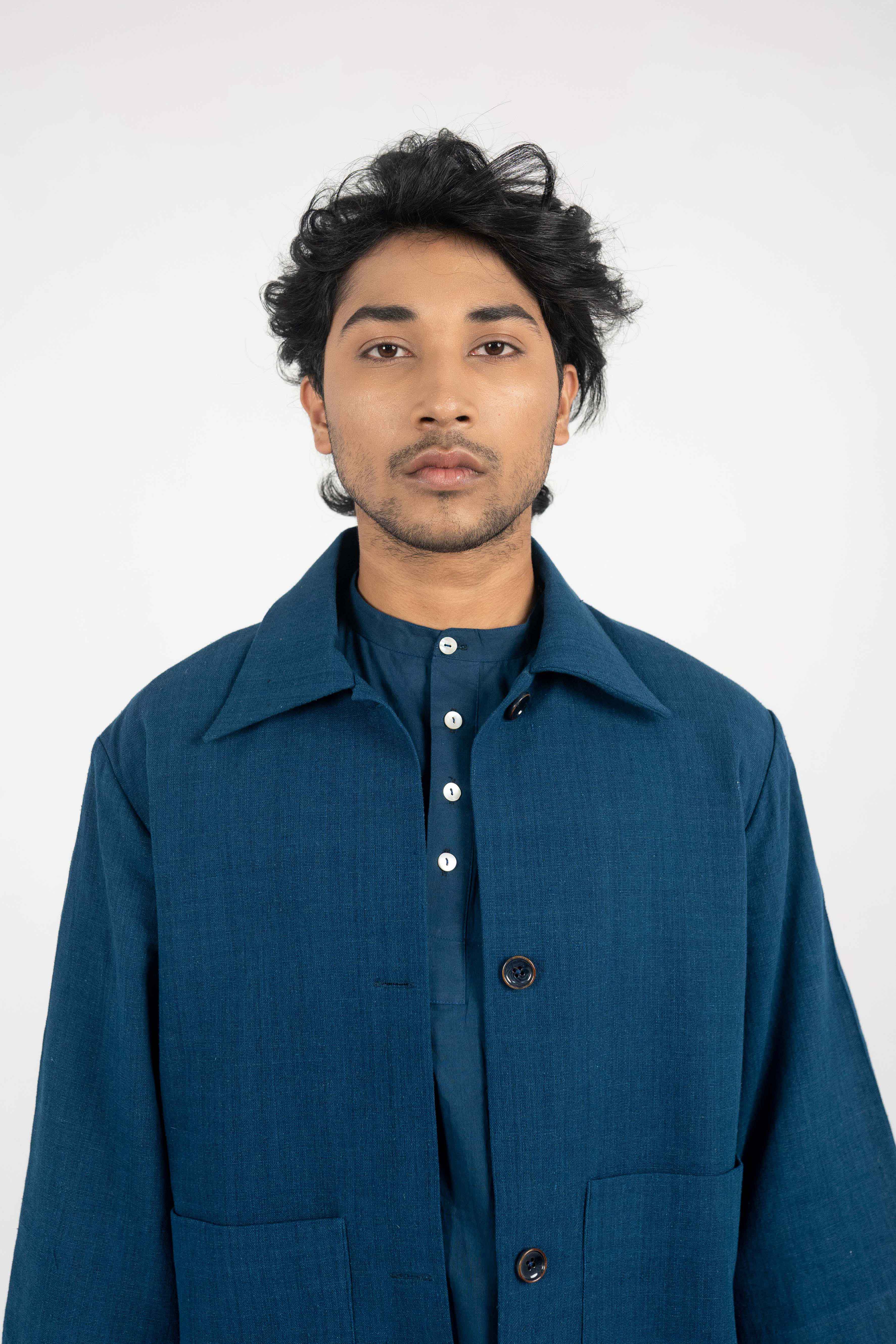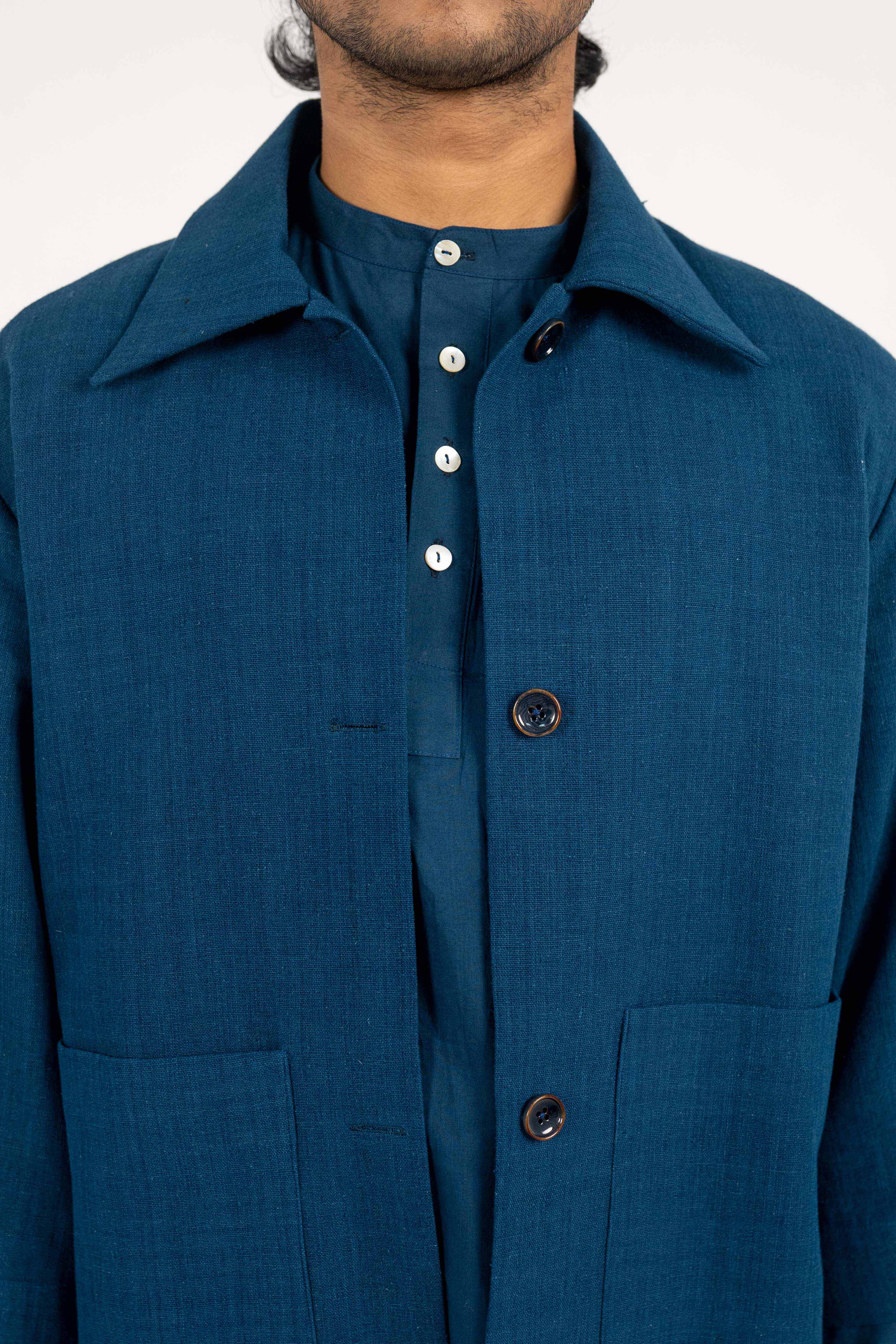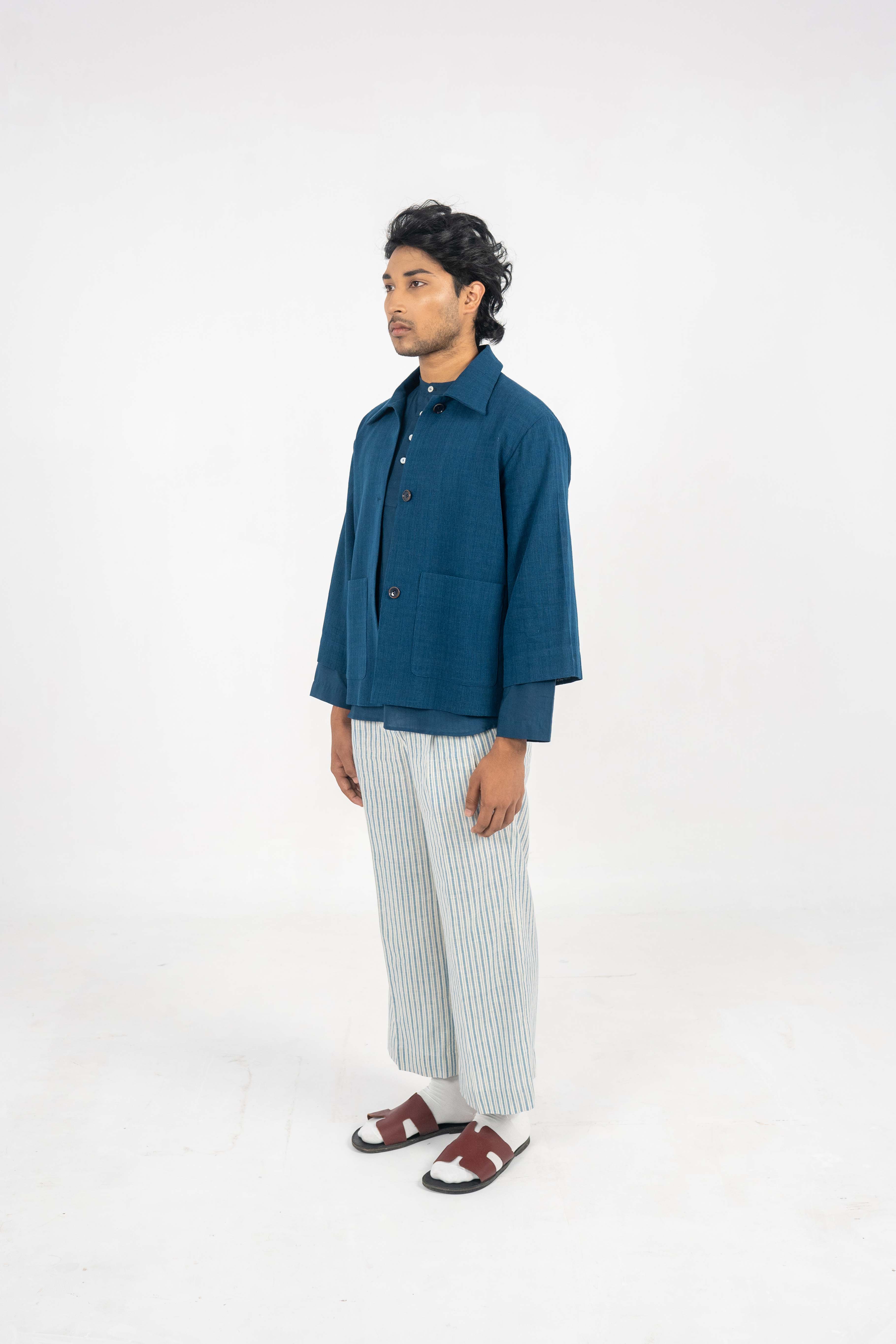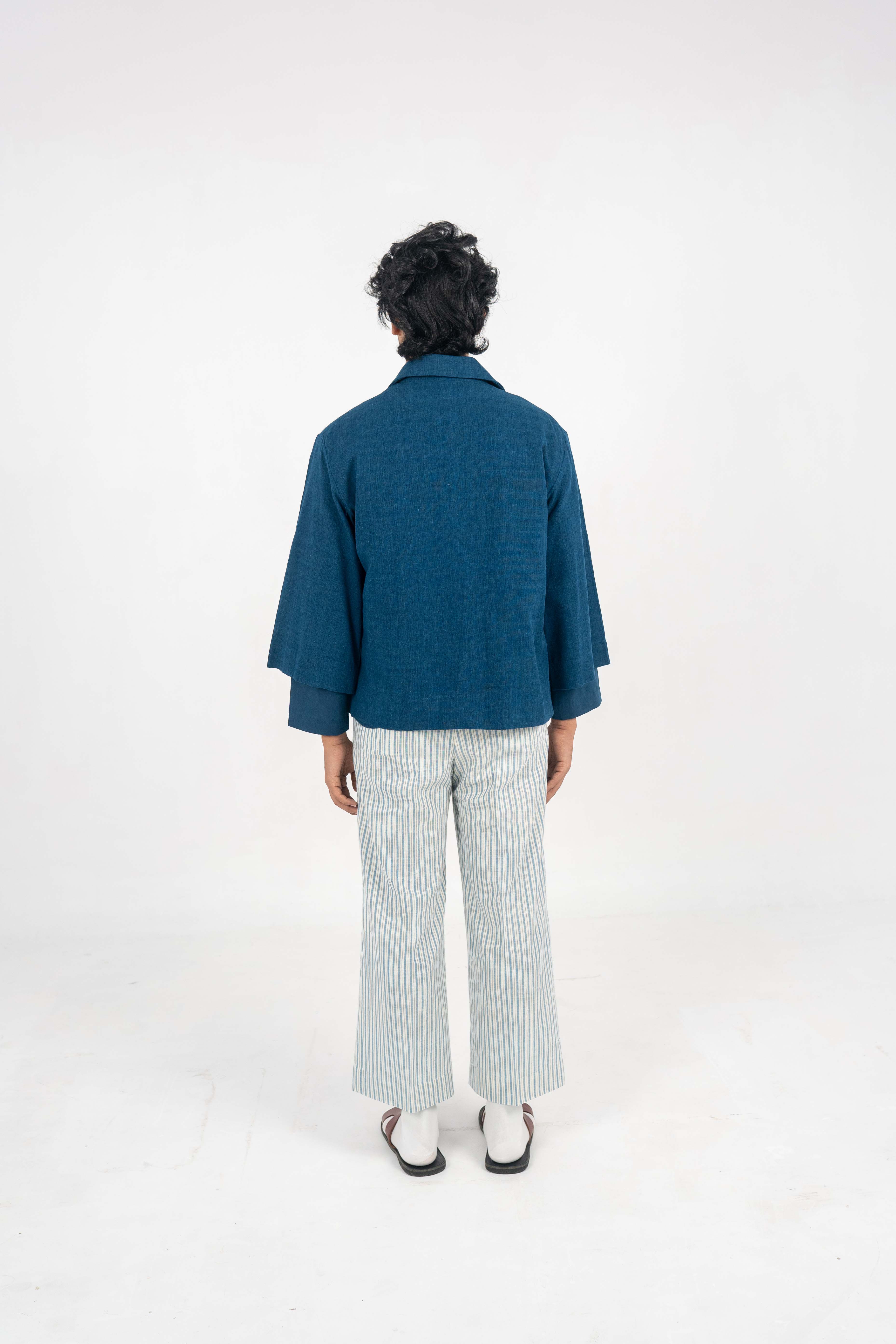 A Minimalist Indigo Eri Silk jacket. A Minimalist Indigo Eri Silk jacket. – Handwoven Eri Silk fabric. – Indigo Dyed. – Corozo Nut Buttons. – Custom made option is also Available. – Dry Clean only. ₹14,000.00 Size Choose an optionCustom Made (₹14,000.00)L (₹14,000.00)M (₹14,000.00)S (₹14,000.00)Clear A Minimalist Indigo Eri Silk jacket. quantity Add to cart SKU: IN-JACKET-05 Categories: Between the Sky & Soil, Collections, Jacket, Menswear, Products Tags: Between Sky and Soil, Eri Silk, Handwoven, Indigo Dyed Additional information Additional information Size Custom Made, L, M, S Related products Off White Eri Silk Notch collar jacket ₹12,000.00 Select options Hand-crochet Eri Silk top with side slit details. ₹8,000.00 Select options Tea dyed Eri silk pleated trousers with broad turn-up hem. ₹8,000.00 Select options Eri Silk bucket hat. ₹3,000.00 Select options