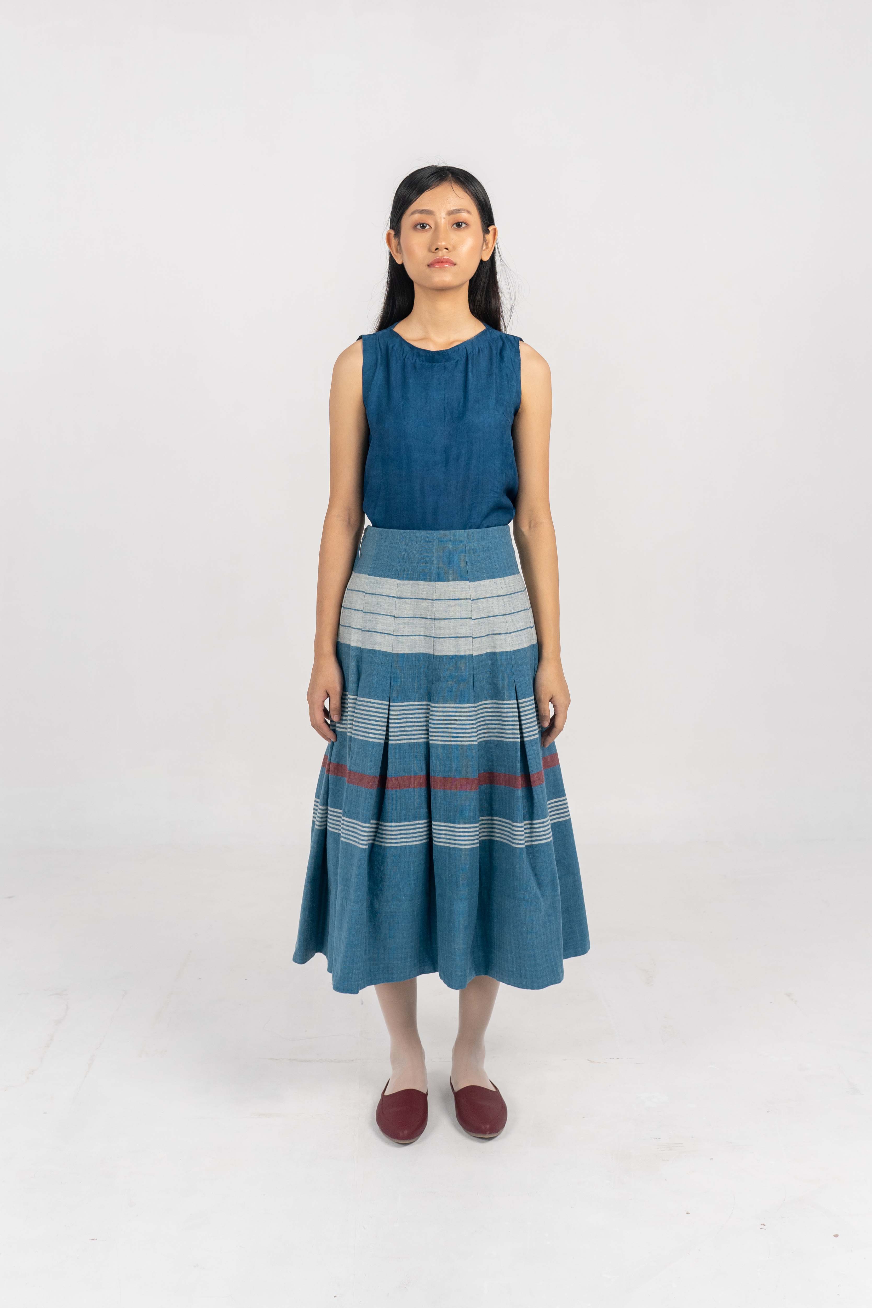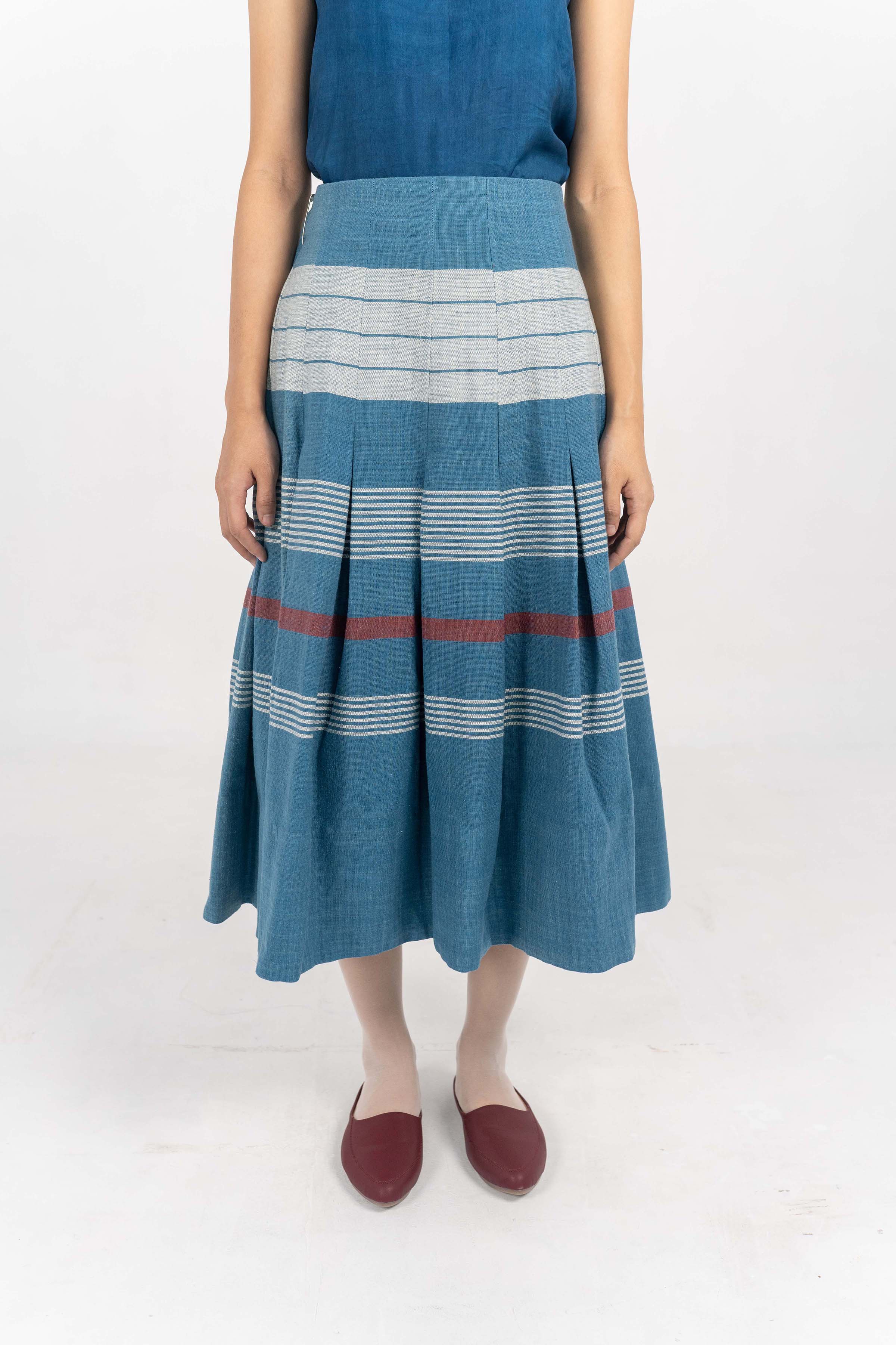 Rhymester Indigo Stripe/Check Eri Silk skirt. Rhymester Indigo Stripe/Check Eri Silk skirt. – Handwoven Eri Silk X Cotton fabric. – Indigo Dyed. – Corozo Nut Buttons. – Custom made size option is also Available. – Handwoven Eri Silk X Eri Silk on custom request. – Dry Clean only. ₹12,500.00 Size Choose an optionCustom Made (₹12,500.00)L (₹12,500.00)M (₹12,500.00)S (₹12,500.00)Clear Rhymester Indigo Stripe/Check Eri Silk skirt. quantity Add to cart SKU: IN-SKIRT-25 Categories: Between the Sky & Soil, Collections, Products, Skirt, Womenswear Tags: Between Sky and Soil, Eri Silk, Handwoven, Indigo Dyed Additional information Additional information Size Custom Made, L, M, S Related products Tea dyed Eri Silk Crop jacket ₹12,000.00 Select options Tea dyed Handwoven Eri Silk Trousers with flap detail. ₹12,000.00 Select options Rounded Notch collar Handwoven Eri Silk suit with front creased trousers ₹24,000.00 Select options Hand-crochet Eri Silk top with side slit details. ₹8,000.00 Select options