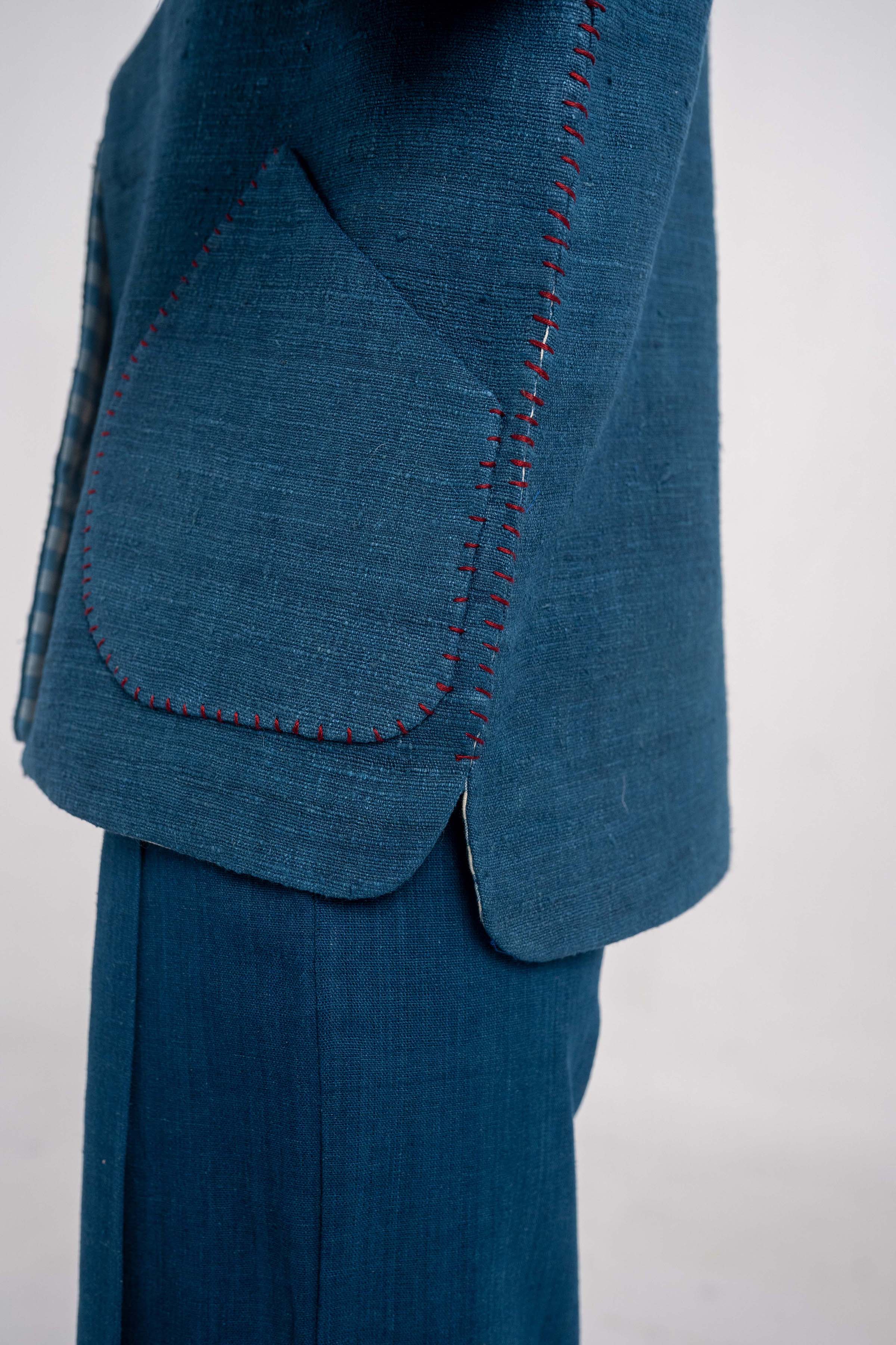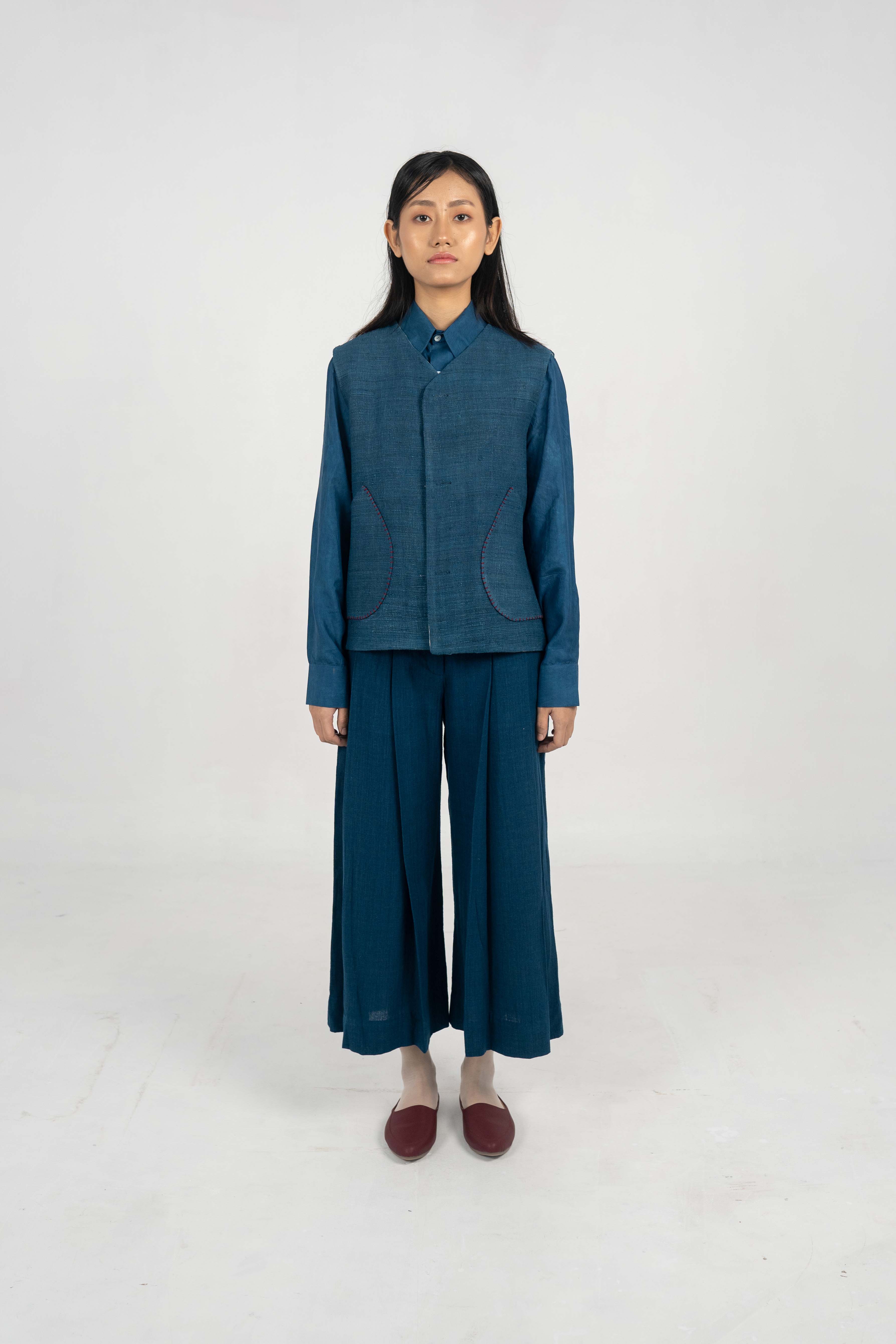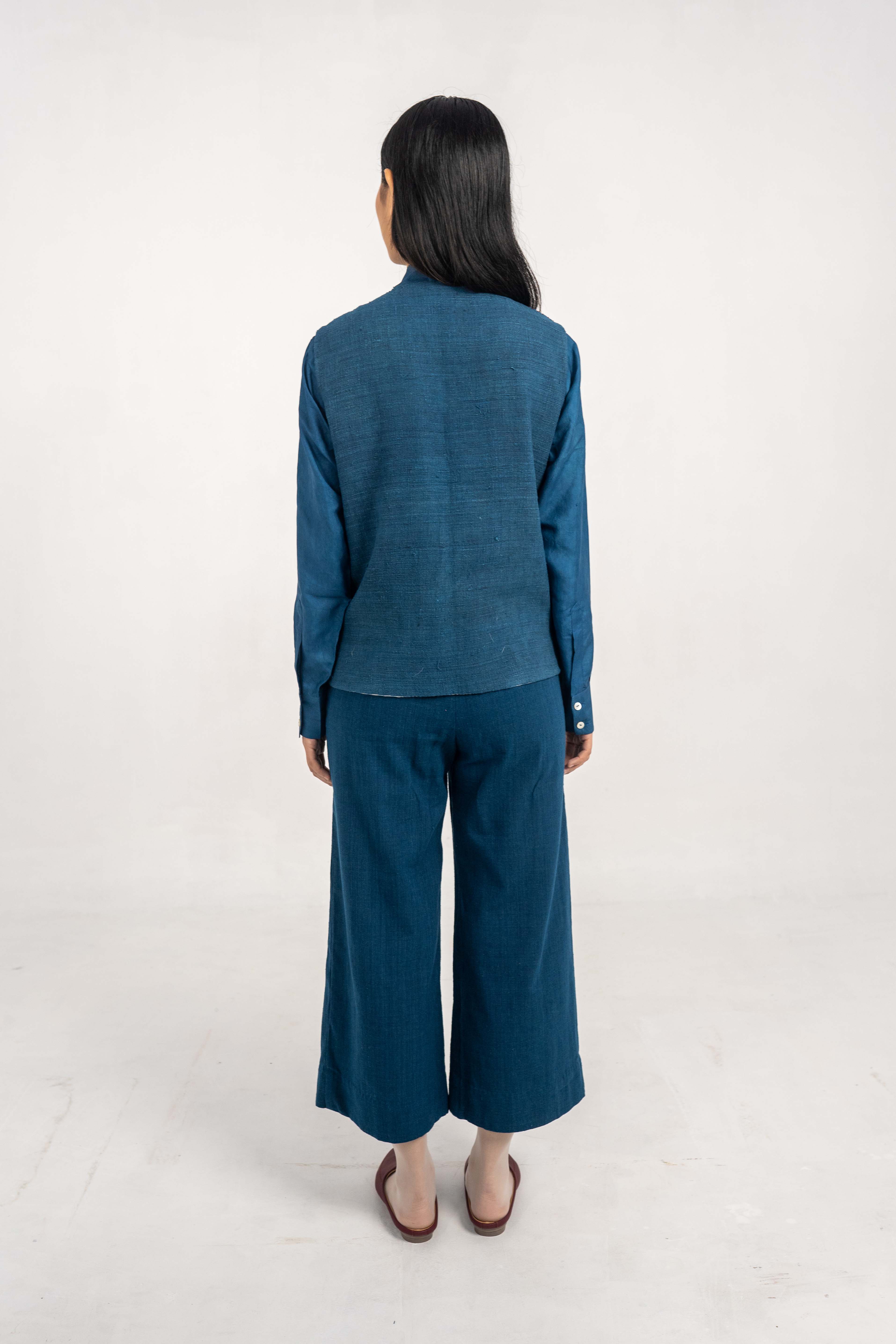 Wisdom Indigo Eri Silk reversible jacket. Wisdom Indigo Eri Silk reversible jacket. – Handwoven Eri Silk & Cotton fabric. – Indigo Dyed. – Corozo Nut Buttons. – Custom made option is also Available. – Dry Clean only. ₹7,500.00 Size Choose an optionCustom Made (₹7,500.00)L (₹7,500.00)M (₹7,500.00)S (₹7,500.00)Clear Wisdom Indigo Eri Silk reversible jacket. quantity Add to cart SKU: IN-JACKET-15 Categories: Between the Sky & Soil, Collections, Jacket, Products, Womenswear Tags: Between Sky and Soil, Eri Silk, Handwoven, Indigo Dyed Additional information Additional information Size Custom Made, L, M, S Related products DB full sleeve Tea dyed Handwoven Eri Silk long coat ₹20,000.00 Select options Tea dyed Eri Silk Peak collar DB Long Jacket. ₹14,000.00 Select options Tea dyed Handwoven Eri Silk Jacket with wrap-over tie-up detail ₹18,000.00 Select options Explorer Indigo Eri Silk Convertible jacket. ₹14,000.00 Select options