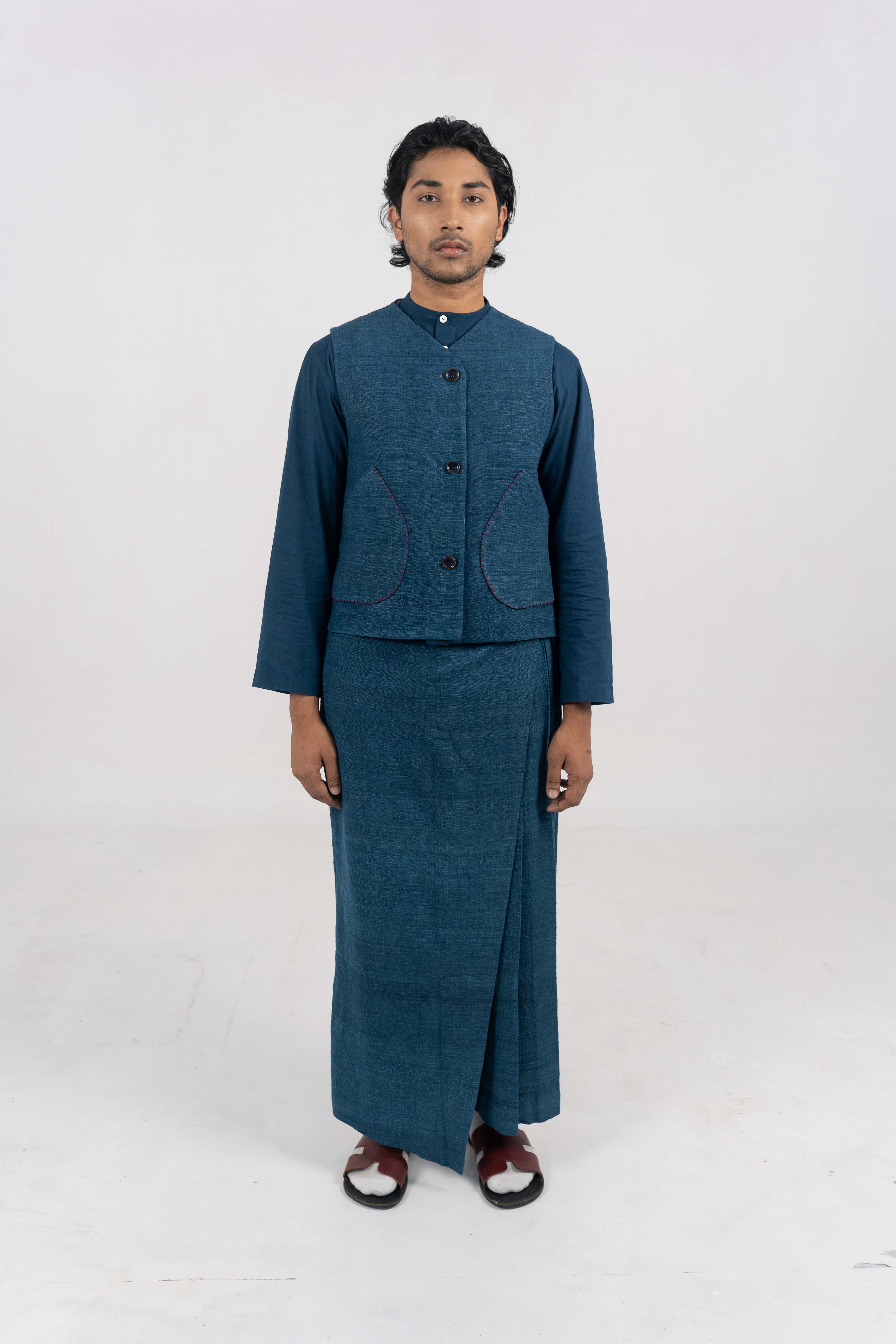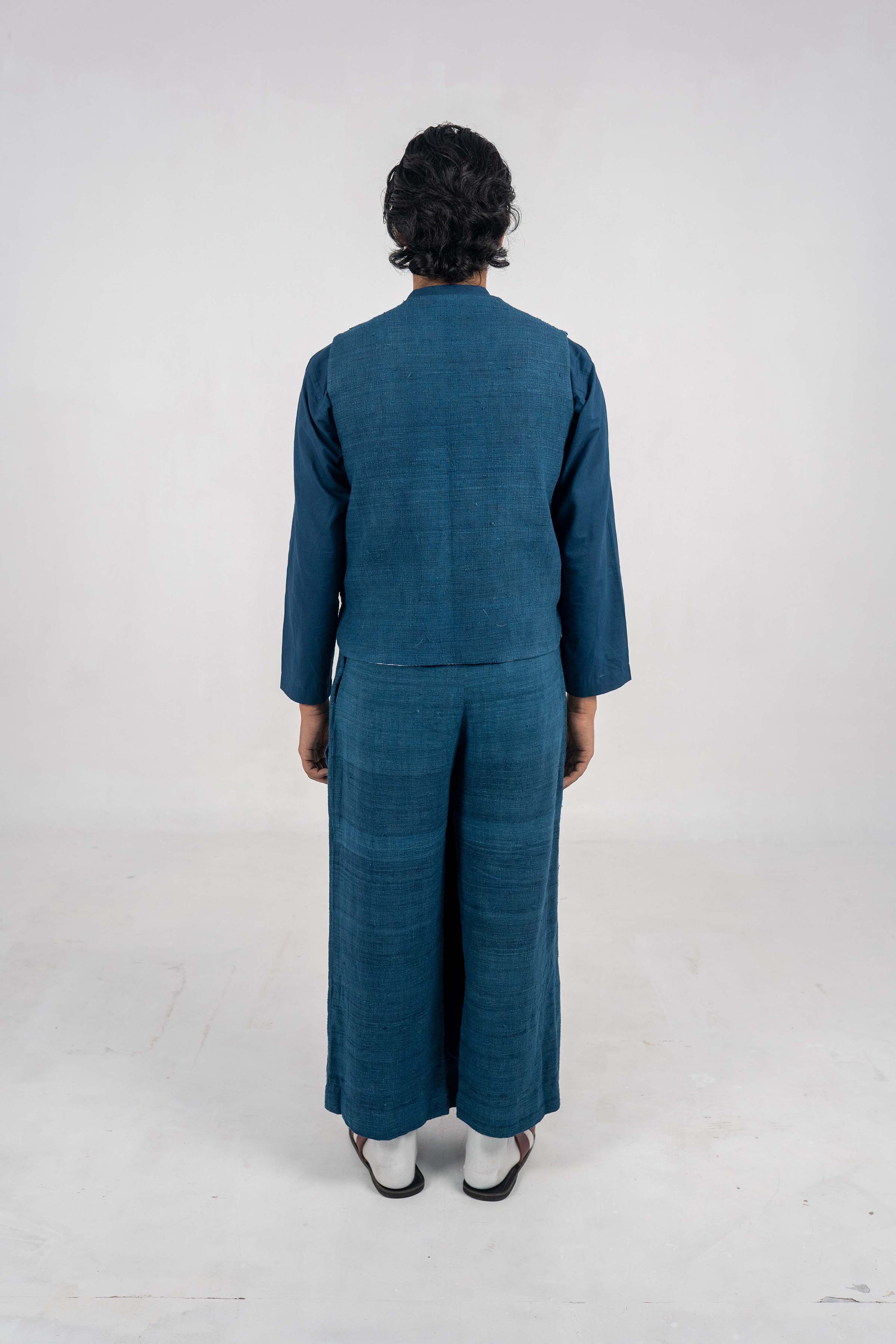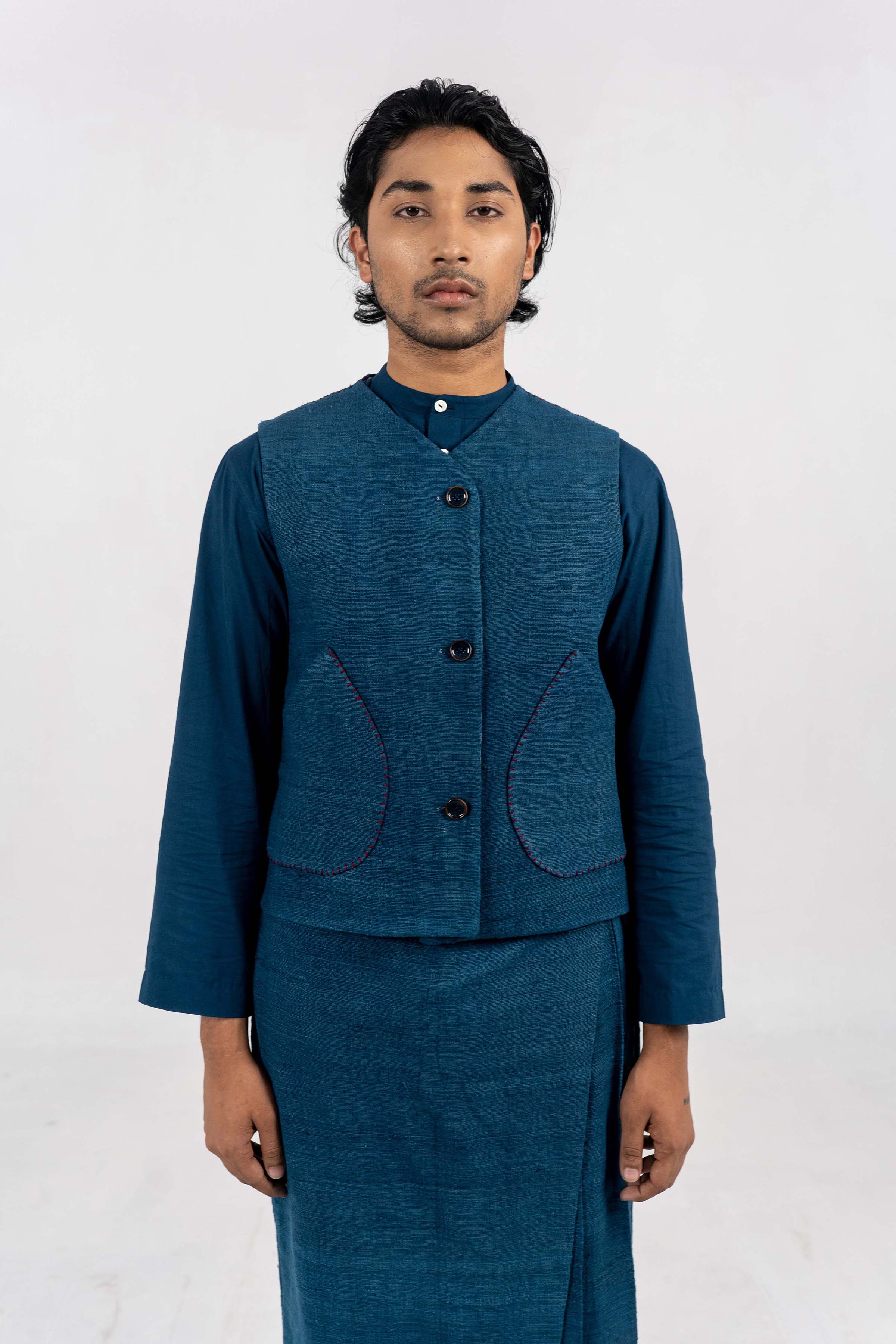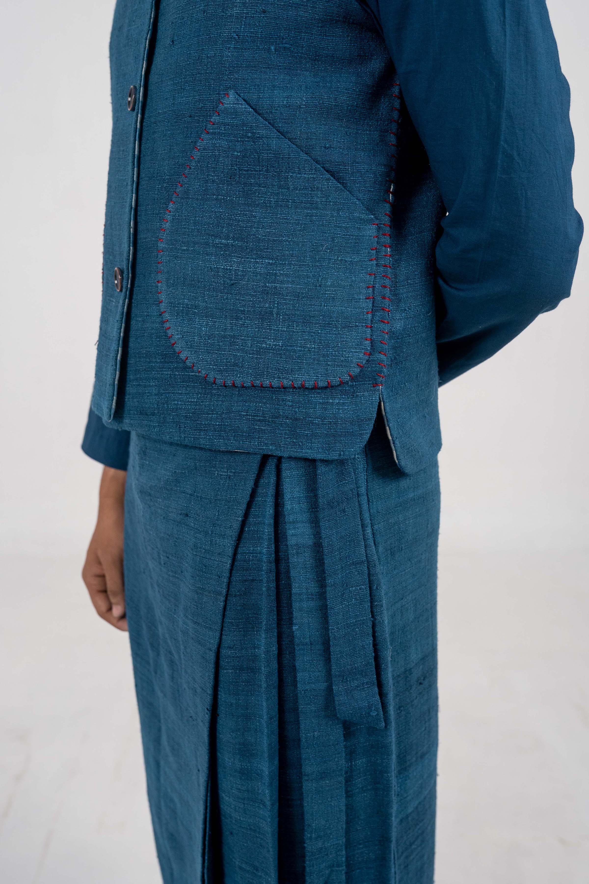 Wisdom Indigo Eri Silk reversible jacket. Wisdom Indigo Eri Silk reversible jacket. – Handwoven Eri Silk & Cotton fabric. – Indigo Dyed. – Corozo Nut Buttons. – Custom made option is also Available. – Dry Clean only. ₹9,500.00 Size Choose an optionCustom Made (₹9,500.00)L (₹9,500.00)M (₹9,500.00)S (₹9,500.00)Clear Wisdom Indigo Eri Silk reversible jacket. quantity Add to cart SKU: IN-JACKET-32 Categories: Between the Sky & Soil, Collections, Jacket, Menswear, Products Tags: Between Sky and Soil, Eri Silk, Handwoven, Indigo Dyed Additional information Additional information Size Custom Made, L, M, S Related products Rounded Notch collar Handwoven Eri Silk suit with front creased trousers ₹24,000.00 Select options Tea dyed Handwoven Eri Silk Suit with wrap-over tie-up detail & Knife pleated hakama style pants ₹28,000.00 Select options Tea dyed Eri Silk Peak collar SB Jacket ₹14,000.00 Select options Handwoven Eri Silk sleeveless jacket (can be used as Dress) with tea-dyed detail at back ₹15,000.00 Select options
