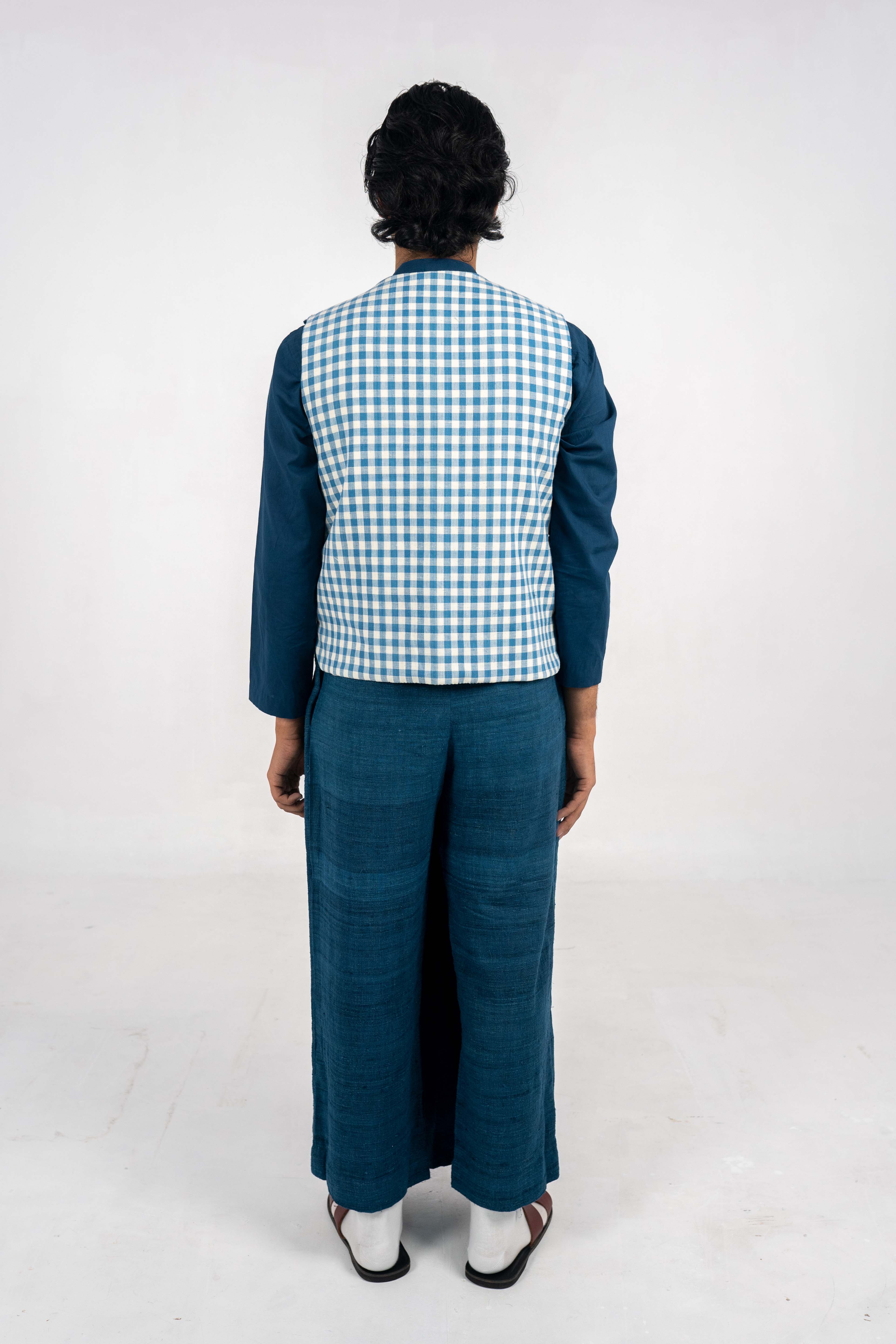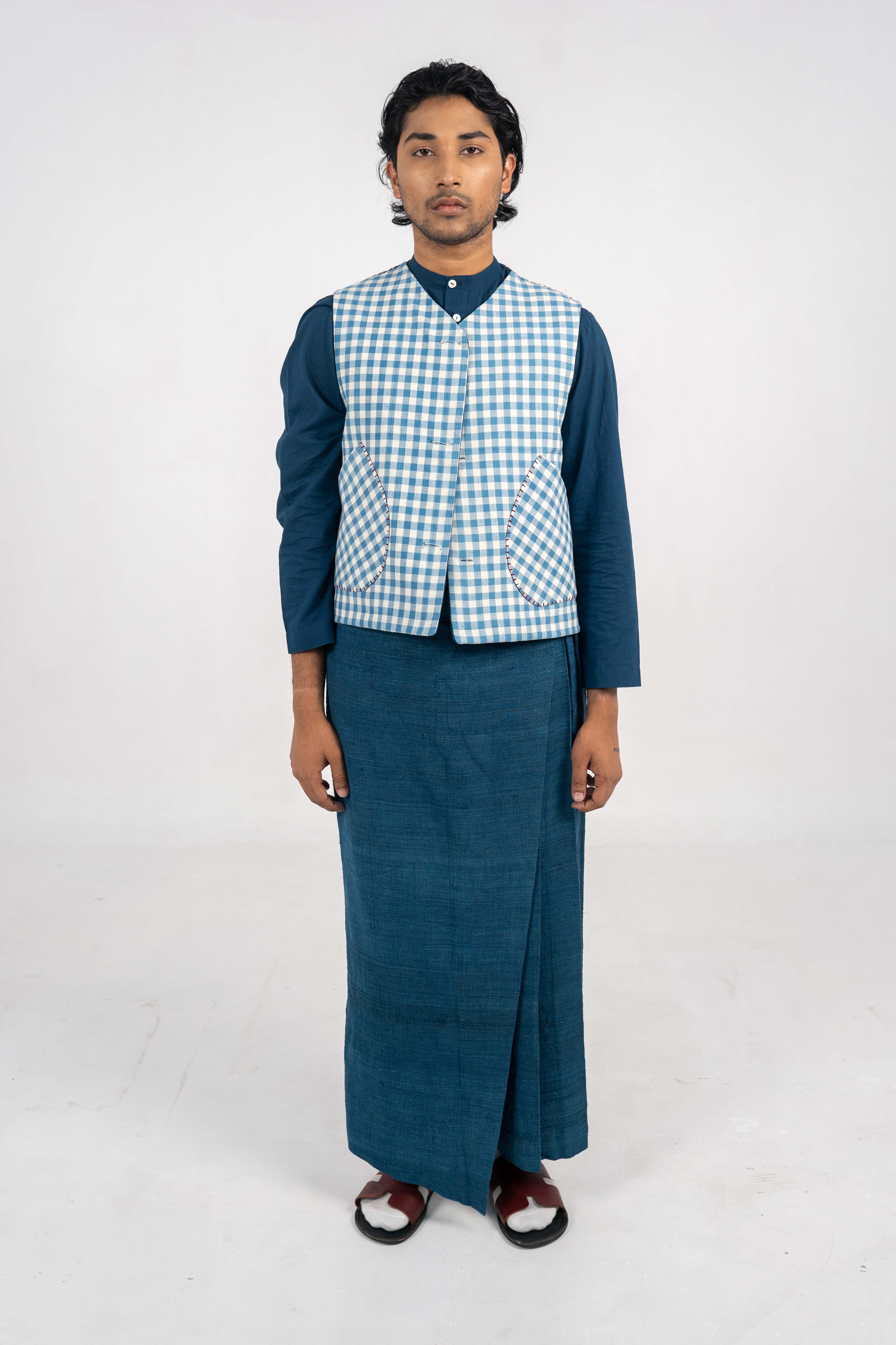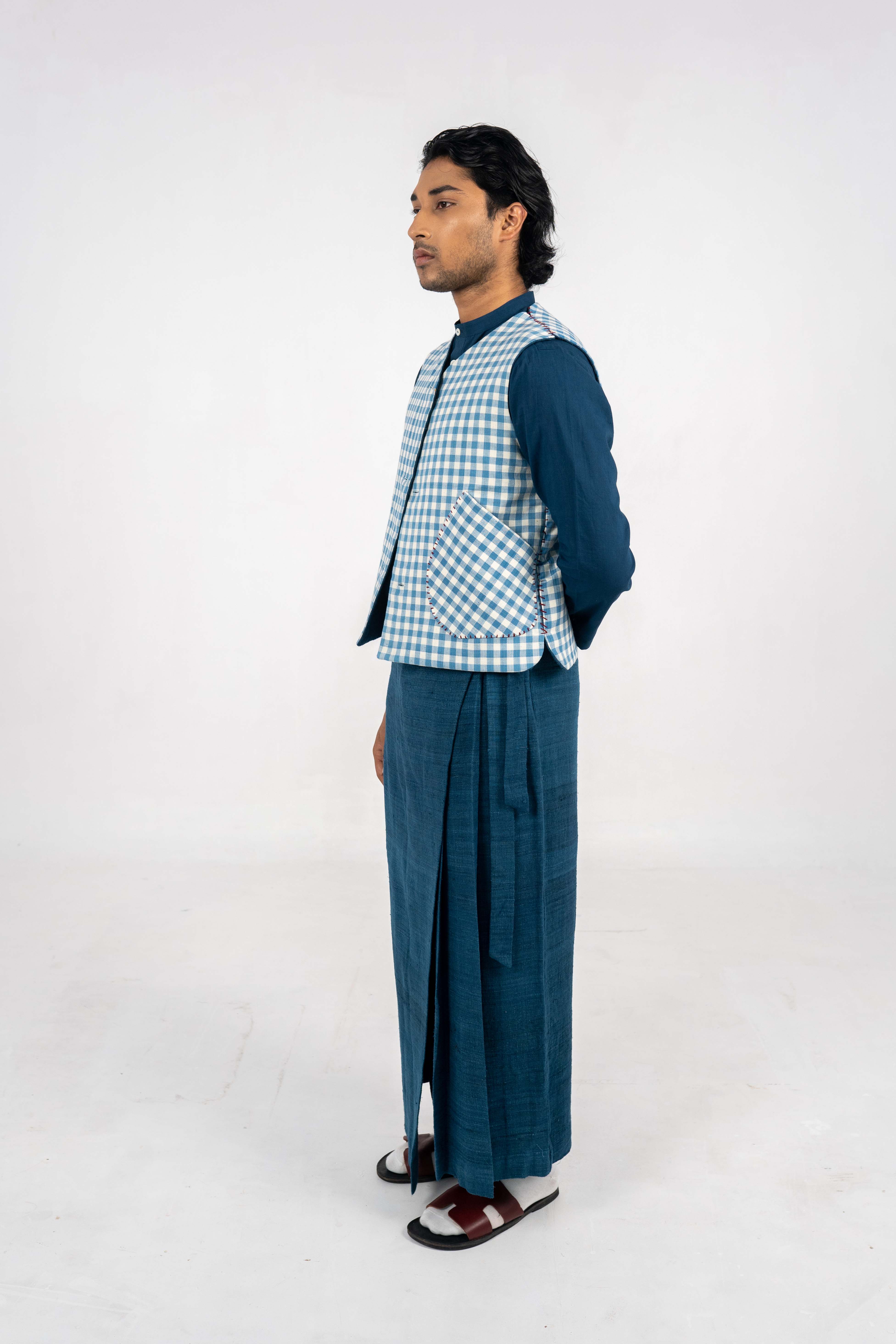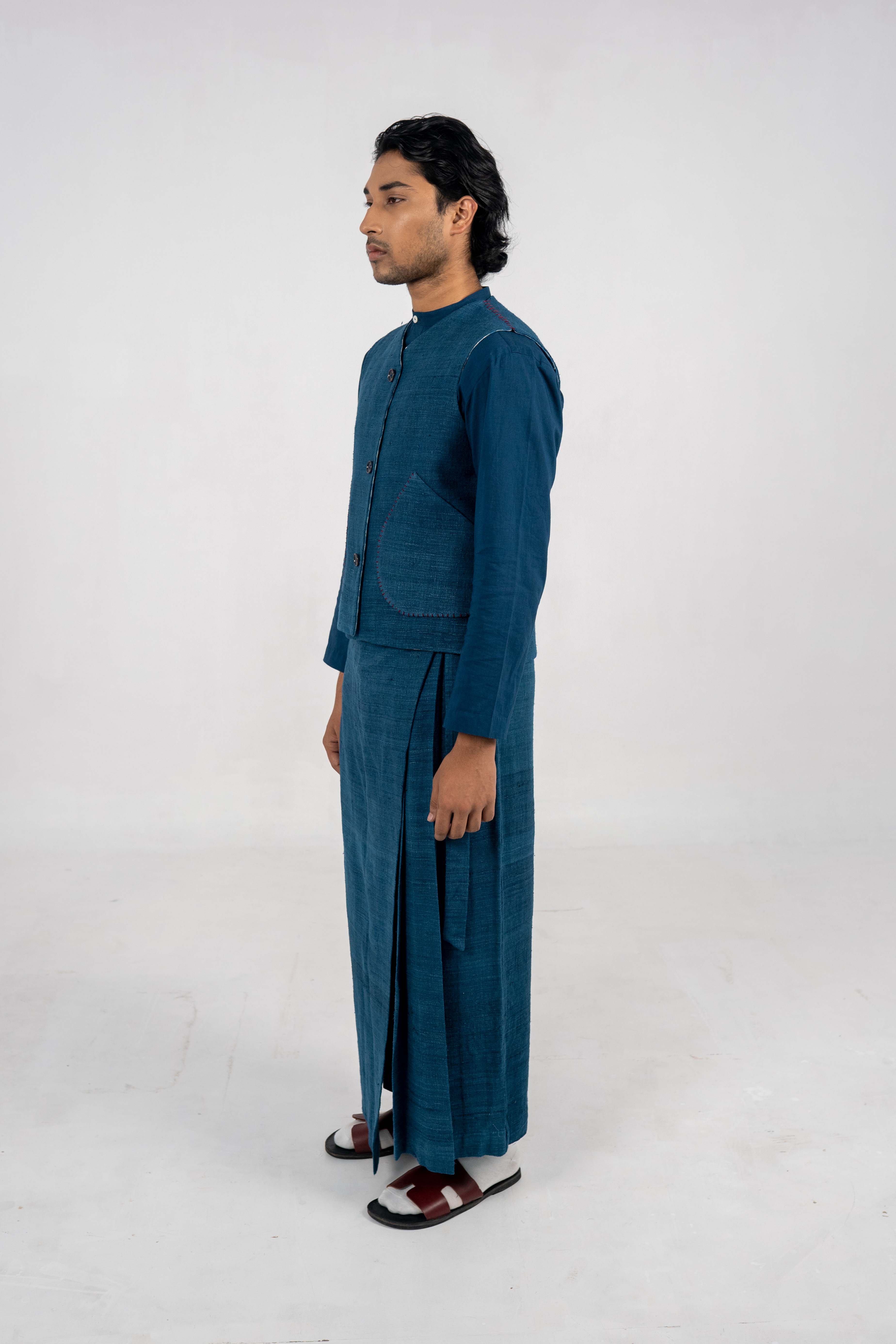 Wisdom Indigo Eri Silk reversible jacket. Wisdom Indigo Eri Silk reversible jacket. – Handwoven Eri Silk & Cotton fabric. – Indigo Dyed. – Corozo Nut Buttons. – Custom made option is also Available. – Dry Clean only. ₹9,500.00 Size Choose an optionCustom Made (₹9,500.00)L (₹9,500.00)M (₹9,500.00)S (₹9,500.00)Clear Wisdom Indigo Eri Silk reversible jacket. quantity Add to cart SKU: IN-JACKET-32 Categories: Between the Sky & Soil, Collections, Jacket, Menswear, Products Tags: Between Sky and Soil, Eri Silk, Handwoven, Indigo Dyed Additional information Additional information Size Custom Made, L, M, S Related products Rounded Notch collar Handwoven Eri Silk suit with front creased trousers ₹24,000.00 Select options Tea dyed Handwoven Eri Silk Suit with wrap-over tie-up detail & Knife pleated hakama style pants ₹28,000.00 Select options Tea dyed Eri Silk Peak collar SB Jacket ₹14,000.00 Select options Handwoven Eri Silk sleeveless jacket (can be used as Dress) with tea-dyed detail at back ₹15,000.00 Select options