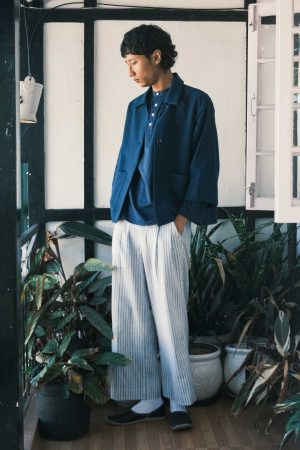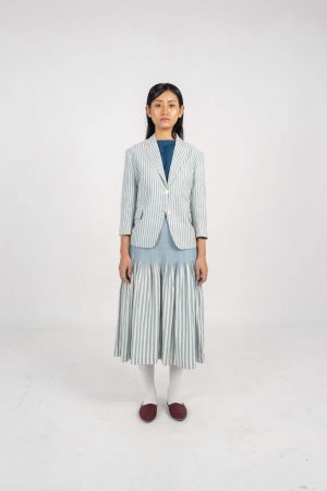 Dreamer Indigo Eri Silk engineered Stripe Jacket.