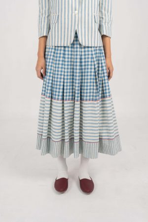 Cottage Indigo Stripe & checks skirt.