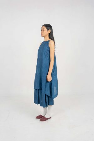 A seeker Indigo Eri Silk Convertible Suit.