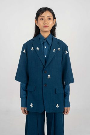 All round Indigo Eri silk Jacket with motifs.