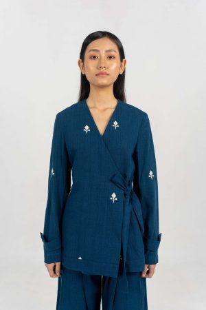 Enchanter Indigo Eri Silk Jacket with tie-up details.